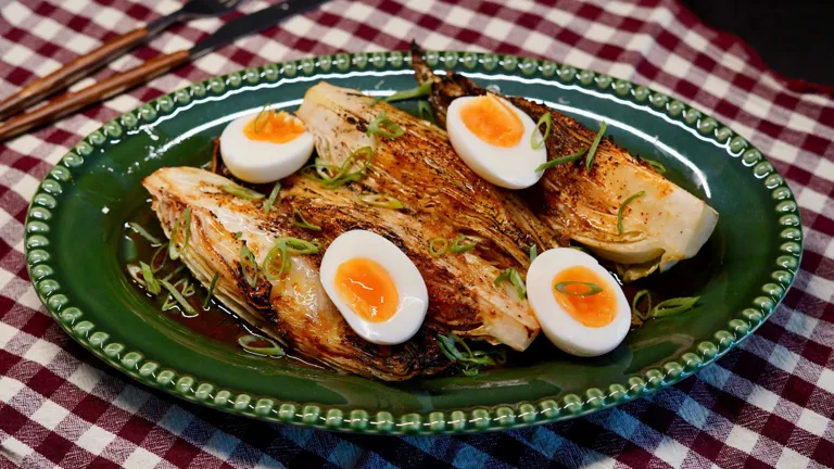 Vegetarisk ramen med udonnudlar och säsongens grönsaker