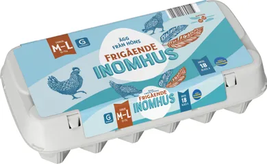 18 ägg från höns frigående inomhus M/L