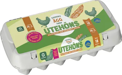 18 ägg från höns frigående utomhus M/L