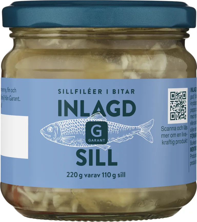 Inlagda sillfiléer i bitar. 220 gram varav 110 gram sill.