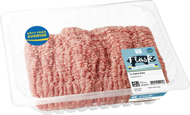 Ingredienser: Fläskfärs, fetthalt 20%.
