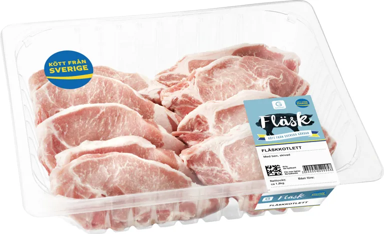 Skivad fläskkotlett med ben. Kött från svenska gårdar. Ca 1,7 kg.